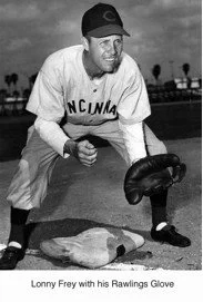 Lonny Frey, a slick fielding major league second baseman who played for the Reds championship team of the ‘30s and ‘40s, worked with the Rawlings designers to develop a solid web between the thumb and index finger, which ushered in a new era in glove design.