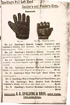 The earliest fielders’ gloves first used in the late 1880s were no more than leatherwork gloves used by common laborers. By the 1890s, Spalding began to manufacture a fielder’s workman’s type glove specifically for baseball use.